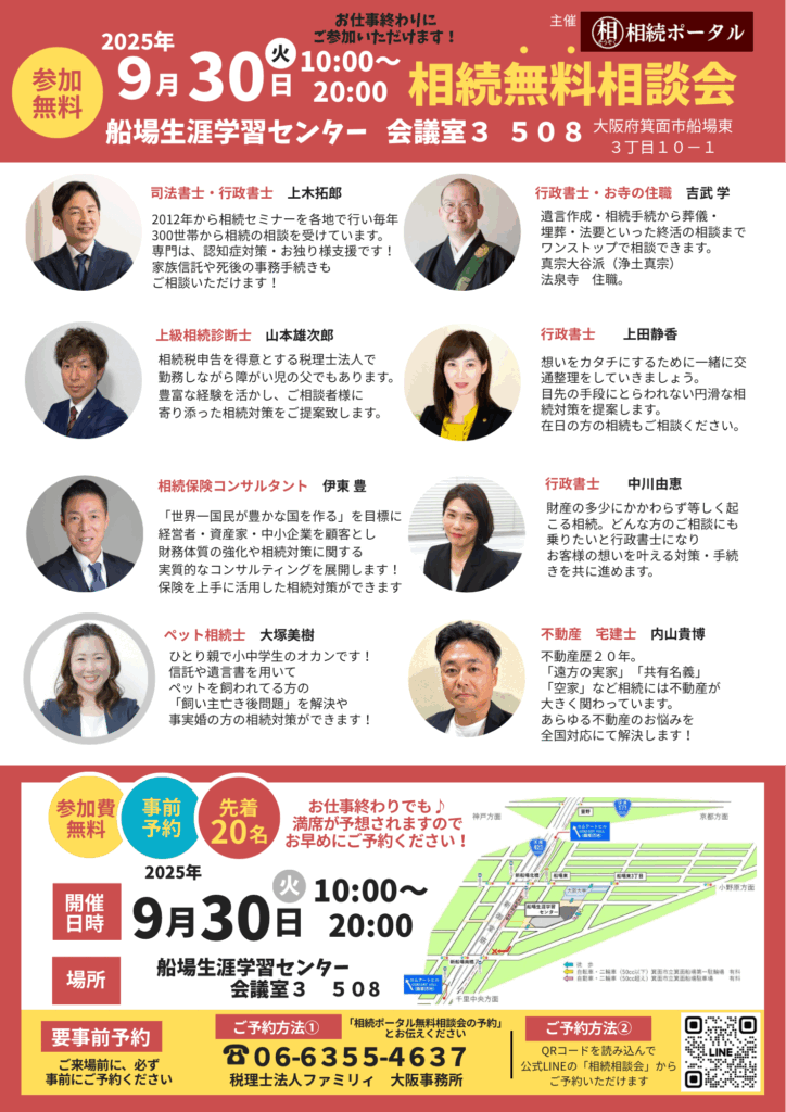 各種相続に関する専門家の相談を初回無料で受けることができます。
