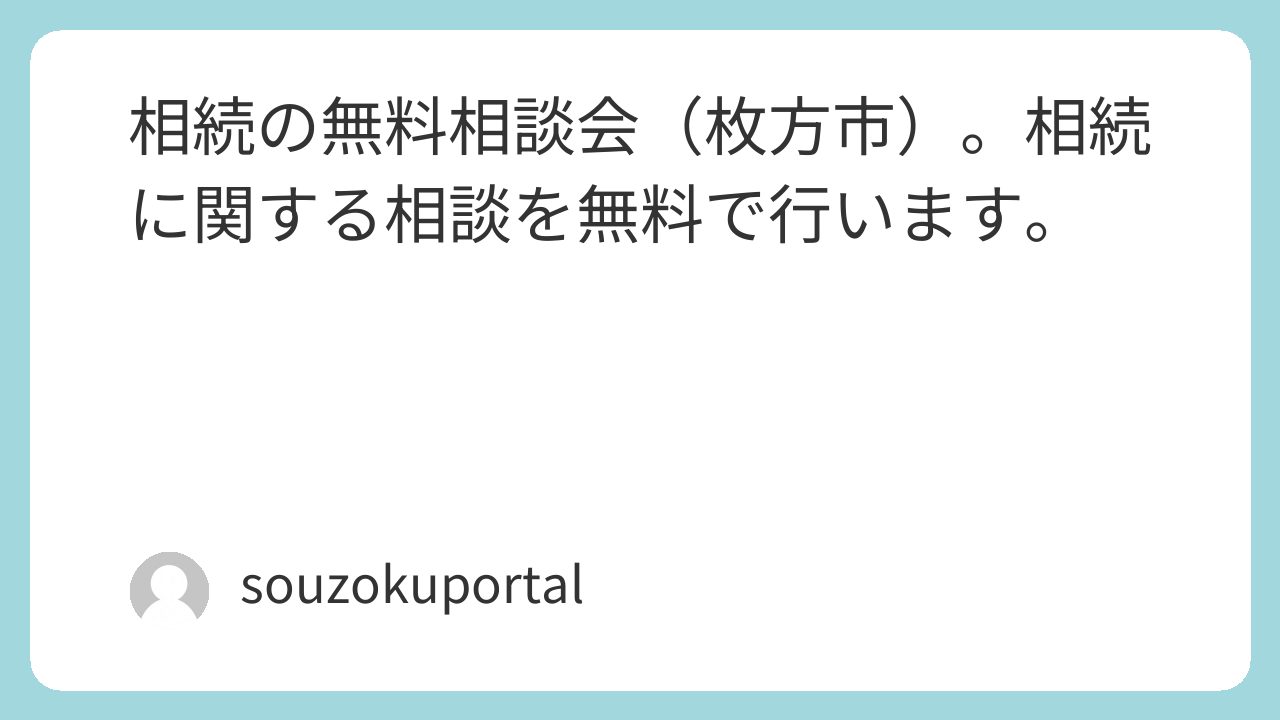 相続の無料相談会(枚方市)。相続に関する相談を無料で行います。